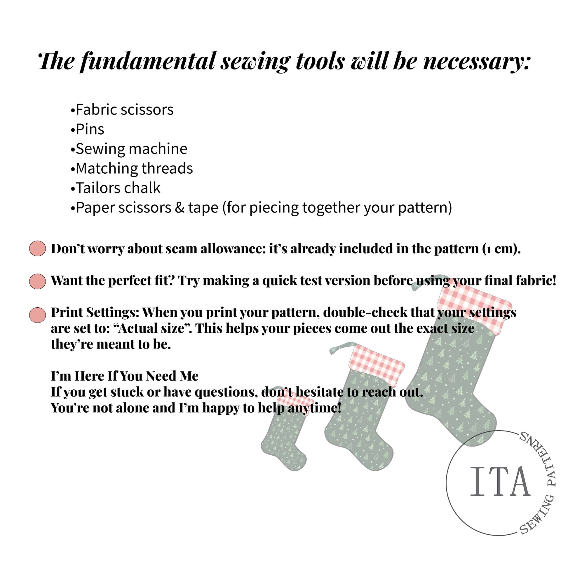 Create festive stockings for the holidays with this versatile Christmas stocking sewing pattern! This pattern includes two styles: a classic plain stocking and a charming ruffled version. Perfect for DIY projects, gifts, or a fun crafting activity with kids.
